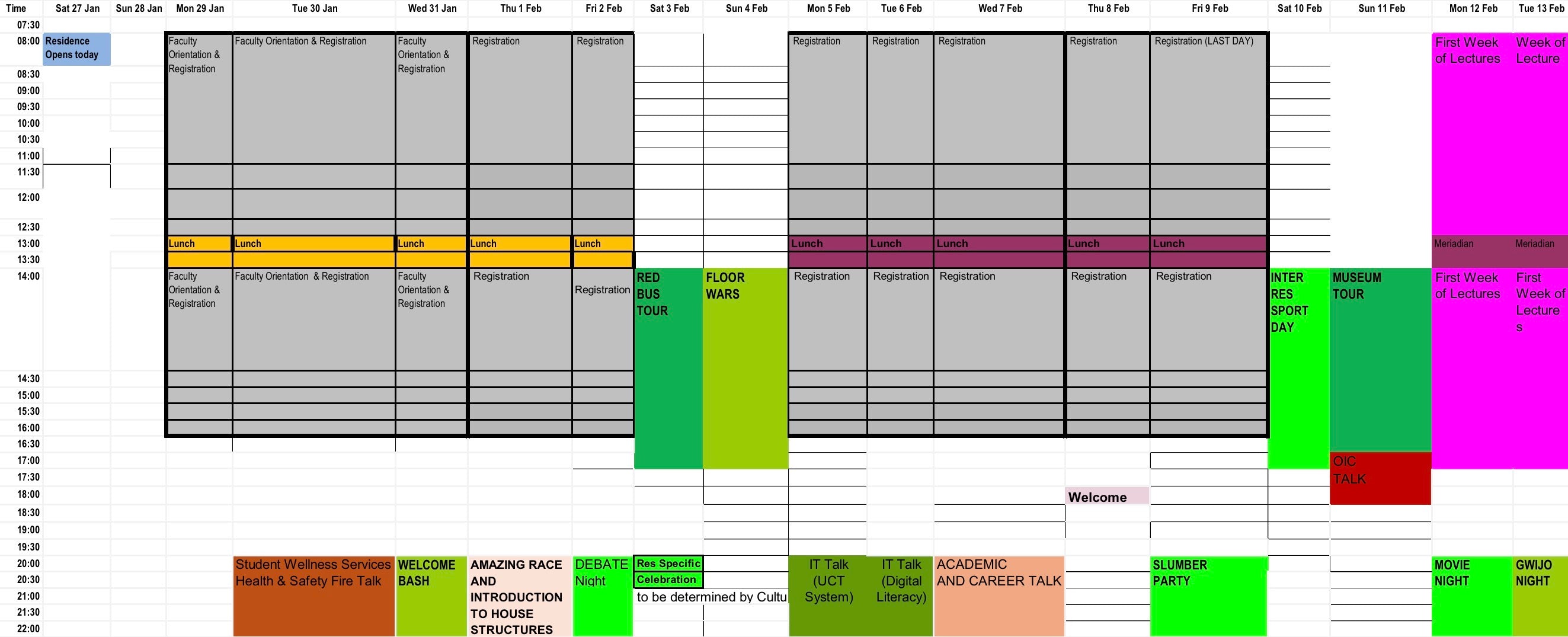 2026 Oweek schedule for 1st years